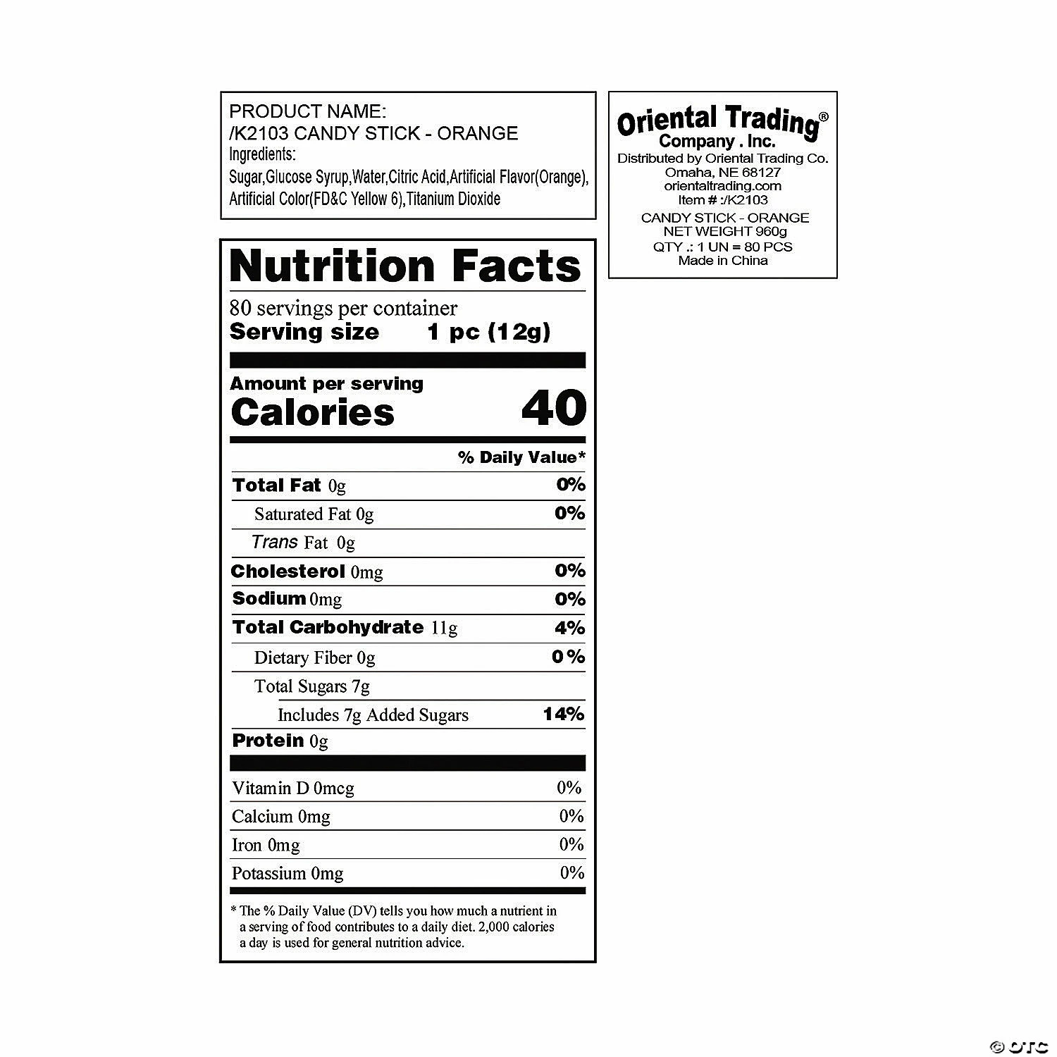 These candy sticks come in colors and flavors for any occasion! Use these individually wrapped candy sticks as fun treats on wedding reception tables, add them to goody bags or gift bags or hand them out for holidays or special events. Orange flavor. (80 sticks per unit) 5″ Fat-free. Total wt, 2 lbs. © OTC