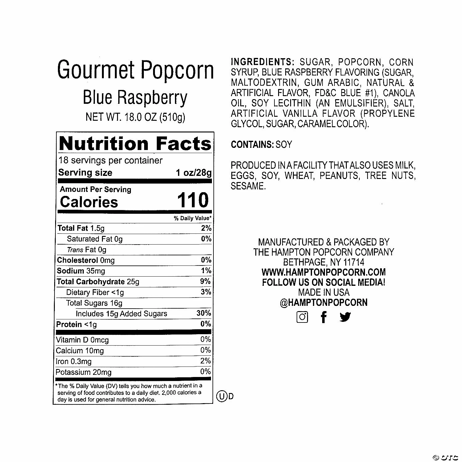 Your family will be begging you to pop this sweet treat into your essential snack options! Keep it in your pantry to satisfy everyday afternoon cravings or drop this bag into birthday gift bags to delight those hard-to-buy-for friends and family members. This gourmet popcorn can make any occasion feel extra special! Blue raspberry flavor. Gluten-free. Total wt., 18 oz. • Edibles are non-returnable. For more information, visit our “Return Policy” page located on our website.• Ingredient, nutrition, allergen and other product information are provided on our Web and Mobile sites for reference purpose only, without warranty or representation as to accuracy. Manufacturers adjust their labeling regularly and are solely responsible for the accuracy of the information. For general questions concerning these items, please contact our customer service at 800-228-0475.
