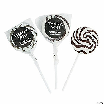 Budget π Personalized Thank You Swirl Lollipops – Black & White π