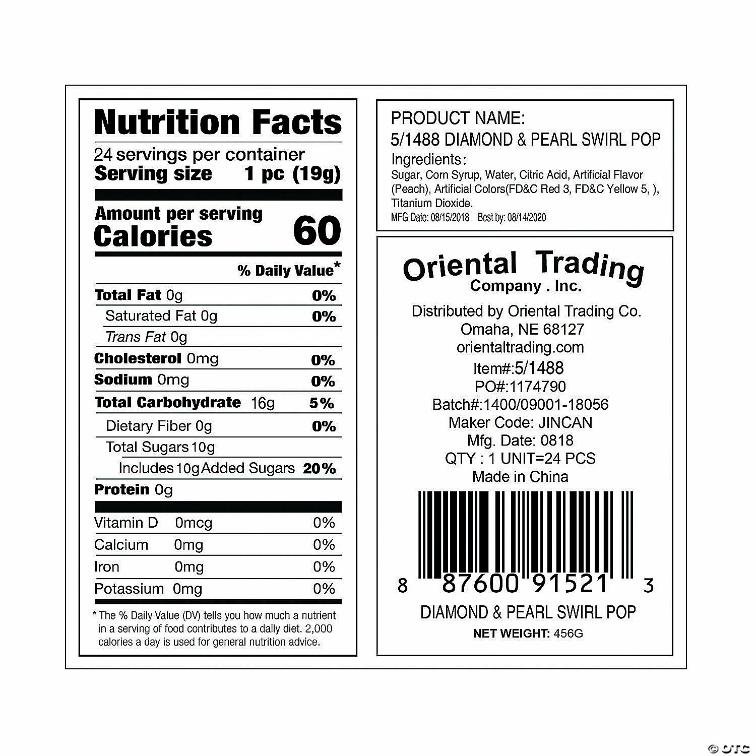 These suckers are a great treat to have around during wedding receptions, birthday parties, carnivals, fundraisers or wherever you need to brighten up your treat table or candy buffet! Sweet, tasty fun for both kids and adults! Peach flavor. Individually wrapped. Each 2″ pop is on a 4 1/2″ plastic stick. (2 dozen per unit) Total wt., 14 oz. Fat-free. Gluten-free. © OTC• Candy is non-returnable. For more information, visit our “Return Policy” page located on our website.• Ingredient, nutrition, allergen and other product information are provided on our Web and Mobile sites for reference purpose only, without warranty or representation as to accuracy. Manufacturers adjust their labeling regularly and are solely responsible for the accuracy of the information. For general questions concerning these items, please contact our customer service at 800-228-0475.