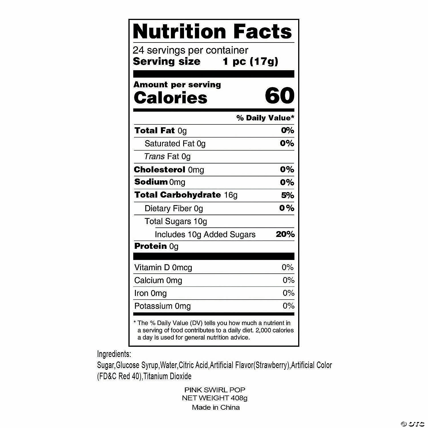 These suckers are a great treat to have around during wedding receptions, birthday parties, carnivals, fundraisers or wherever you need to brighten up your treat table or candy buffet! Sweet, tasty fun for both kids and adults! Strawberry flavor. Individually wrapped. Each 2″ pop is on a 4 1/2″ plastic stick. (2 dozen per unit) Total wt., 14 oz. Fat-free. Gluten-free. © OTC• Candy is non-returnable. For more information, visit our “Return Policy” page located on our website.• Ingredient, nutrition, allergen and other product information are provided on our Web and Mobile sites for reference purpose only, without warranty or representation as to accuracy. Manufacturers adjust their labeling regularly and are solely responsible for the accuracy of the information. For general questions concerning these items, please contact our customer service at 800-228-0475.