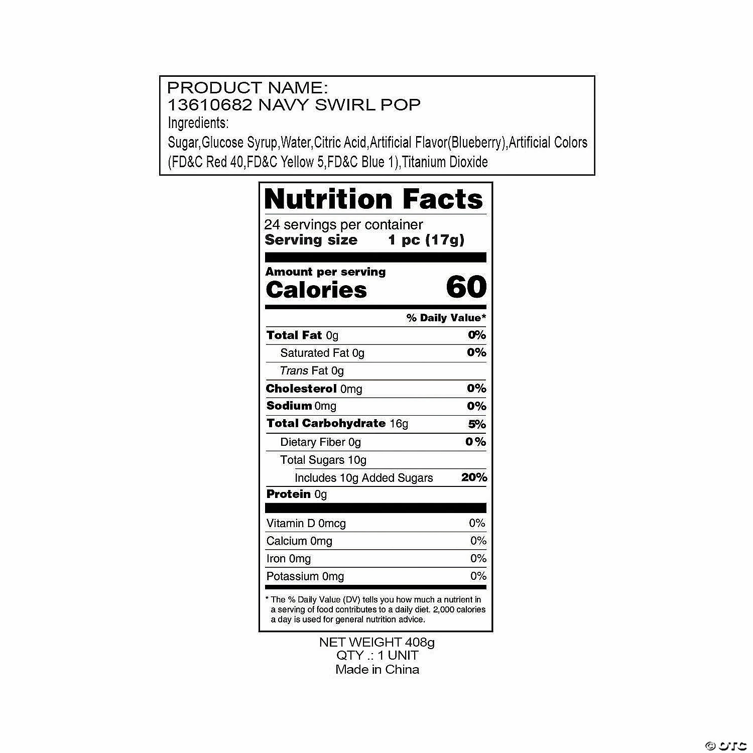 These suckers are a great treat to have around during wedding receptions, birthday parties, carnivals, fundraisers or wherever you need to brighten up your treat table or candy buffet! Sweet, tasty fun for both kids and adults! Blueberry flavor. Individually wrapped. Each 2″ pop is on a 4 1/2″ plastic stick. (2 dozen per unit) Total wt., 14 oz. Fat-free. Gluten-free. © OTC• Candy is non-returnable. For more information, visit our “Return Policy” page located on our website.• Ingredient, nutrition, allergen and other product information are provided on our Web and Mobile sites for reference purpose only, without warranty or representation as to accuracy. Manufacturers adjust their labeling regularly and are solely responsible for the accuracy of the information. For general questions concerning these items, please contact our customer service at 800-228-0475.